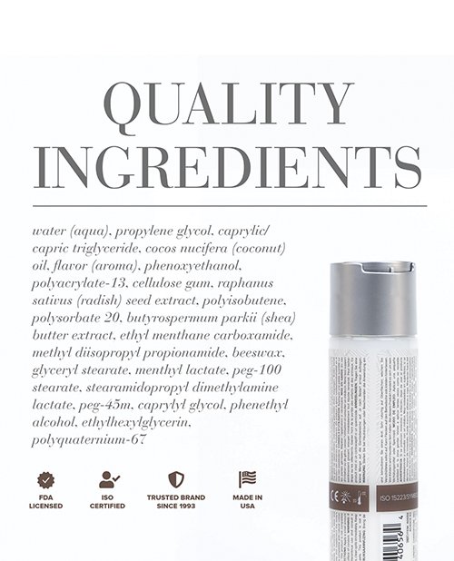 | specifications | Made without Glycerin or Parabens Creamy white non-drip texture Delicate coconut aroma Silicone-free Latex compatible Safe alternative to pure coconut oil Compatibility Natural Rubber Latex Condoms Polyisoprene Condoms Not with Polyurethane Condoms Toys |