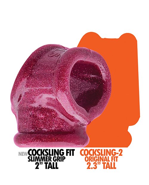 Fits more meat, more balls better: all the openings are slimmed down, more grip at the base of your shaft, less chance your balls might pop up and outthis sling will hug your junk better and its the same rubbery squishy feel as the original because we know thats what works.For you big dicks: COCKSLING FIT will stretch to fit you grippy tight, some meat and balls want more grip for harder bigger bloated meat. (Plus, every dick gets softthis sling is sized to stay grippy even when you are spent).We made COCKSLING FIT in some cool new colors: glitzy sparkle metallic BLUE FIRE and deep CHERRY LIPS, plus new smoky STORM CLEAR that almost becomes invisible, it merges with your fleshy dick color.COCKSLING FIT will fit most dicks even better than the original, we made this fit.