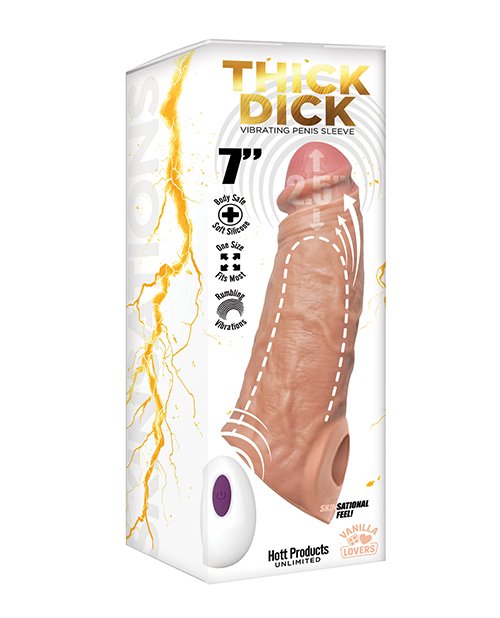 Elevate your pleasure with THICK DICK Premium Vibrating Penis Sleeve, a game changer for thrill seekers. Gain 2.5 inches in length and 35% more girth with ultra-realistic, body-safe silicone. Enjoy 10 rumbling vibration modes.